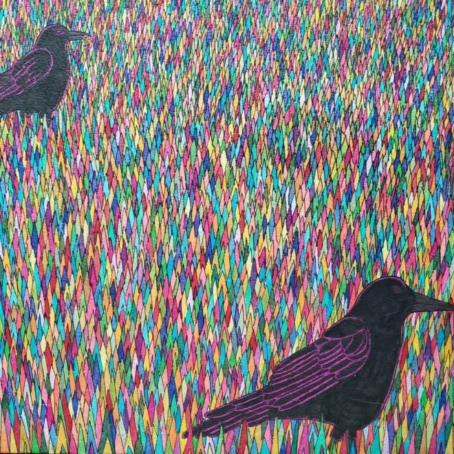 This is the first piece of three in a set of large-scale pieces based on things I saw on my near-monthlong trip to Europe in the spring. I turned 40 this past year, and my family and friends conspired to throw me an entirely surprising surprise party and to contribute to sending me on a trip for most of May. I spent almost a week in Rome, a week in Paris, a few days in London, and a week and half traveling all over Scotland.